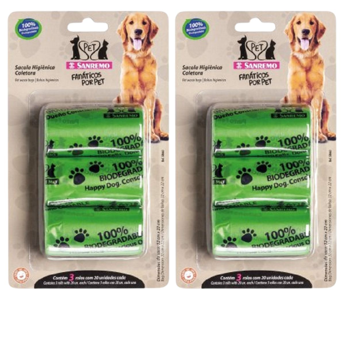 Kit 2x Sacolas Coletoras biodegradáveis. Cada rolinho contem 20 sacolas. São ideais para passeios e caminhadas diárias com seu cachorro.