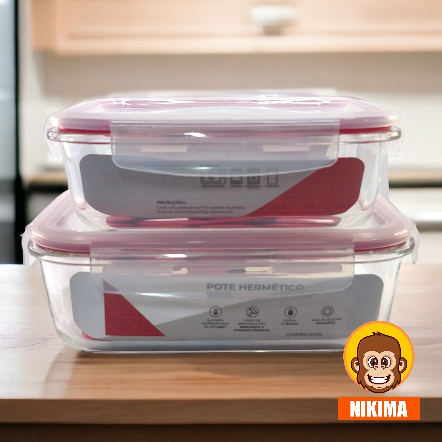 Kit Pote Hermético em Vidro 1500ml + Pote de Vidro Hermético de Vidro 1000ml