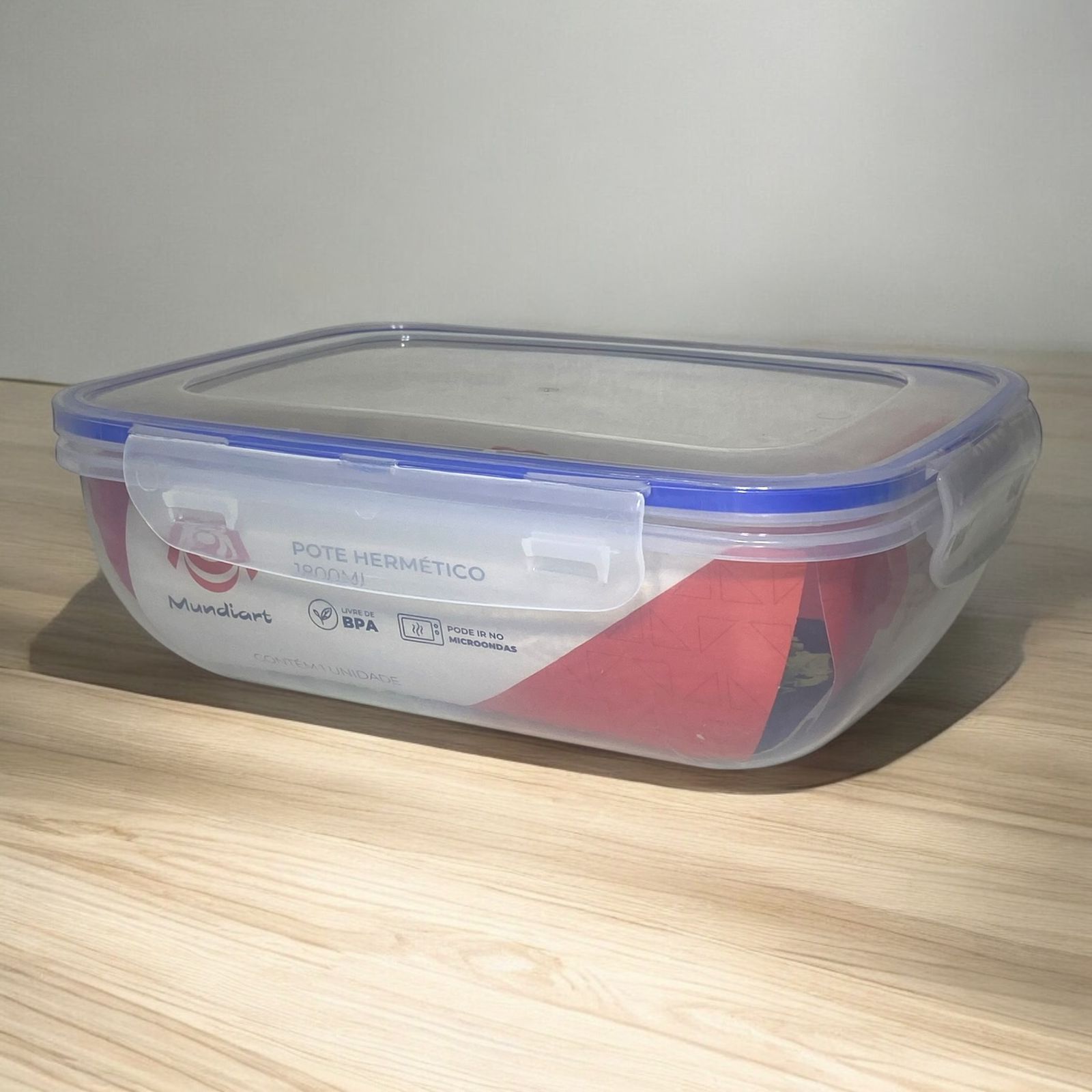 Conserve seus alimentos com praticidade e estilo com o Pote Hermético Retangular Azul 1800ML!"